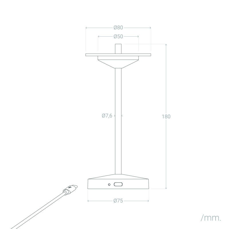 Deze tafellamp werkt volledig draadloos dankzij de ingebouwde Li-ion batterij. Hierdoor ben je niet afhankelijk van een stopcontact en geniet je altijd en overal van sfeervol licht. Opladen gaat eenvoudig met de meegeleverde USB-kabel, waardoor je de lamp ook onderweg of tijdens een kampeertrip kunt gebruiken. Met zijn praktische formaat is hij ideaal om mee te nemen en flexibel in te zetten waar extra licht gewenst is.