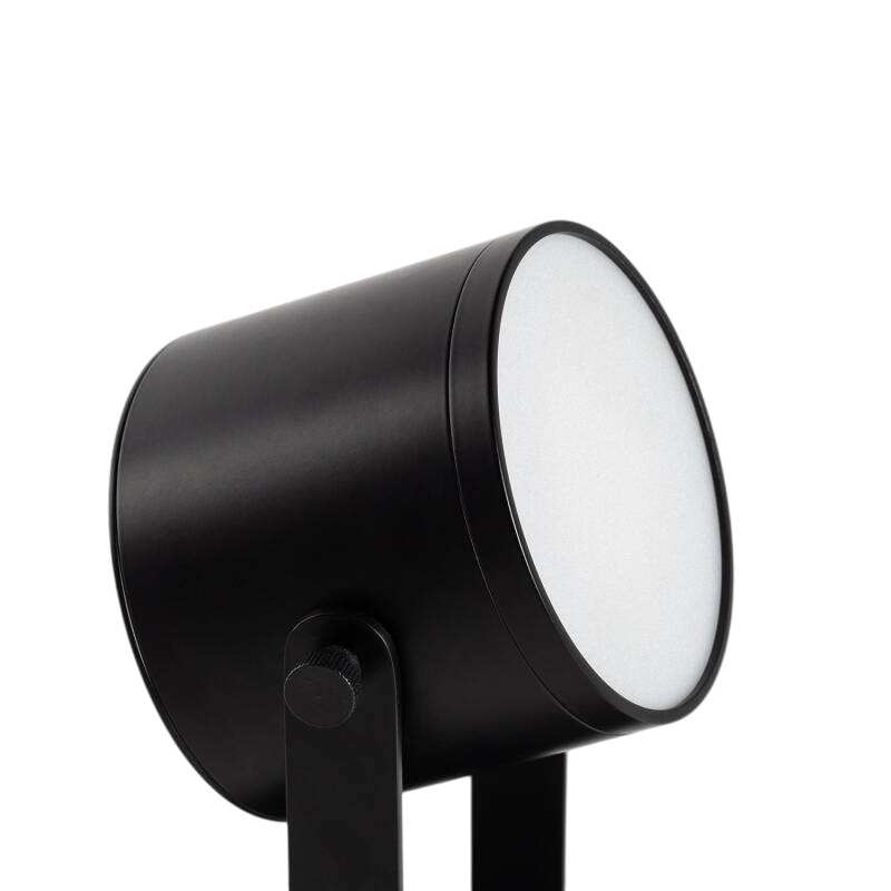 De tafellamp is volledig vervaardigd uit metaal met een moderne zwarte afwerking. De opale lens verzacht het licht en voorkomt verblinding. Het robuuste ontwerp met verstelbare schroeven geeft de lamp een stoere industriële uitstraling die perfect past in moderne en minimalistische interieurs.