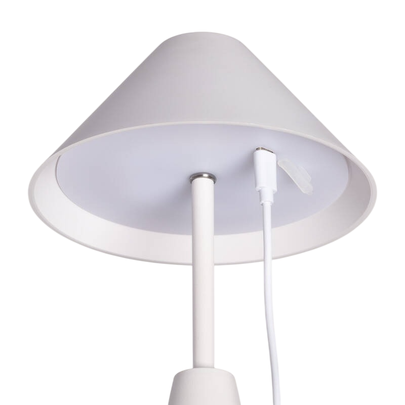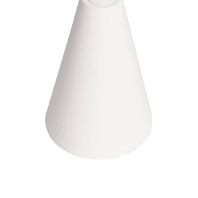 De behuizing van stevig metaal geeft de tafellamp niet alleen een luxe uitstraling, maar maakt hem ook extra duurzaam. De warme witte kleur en de conische vormgeving voegen een modern accent toe dat perfect combineert met zowel minimalistische als klassieke interieurs.